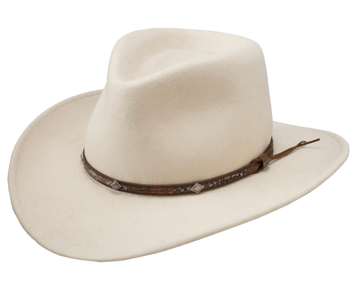 Stylish, durable and ideal for any adventure, this rugged wool felt Mountain Sky Hat is made in the USA of high-quality water-resistant wool felt. It's also completely crushable, meaning it can easily be rolled up and packed into a bag while still retaining its shape. The 3 1/2" underwelt curved brim provides necessary all-weather protection and a breathable DRI-LEX absorbent sweatband ensures comfort for all-day wear.