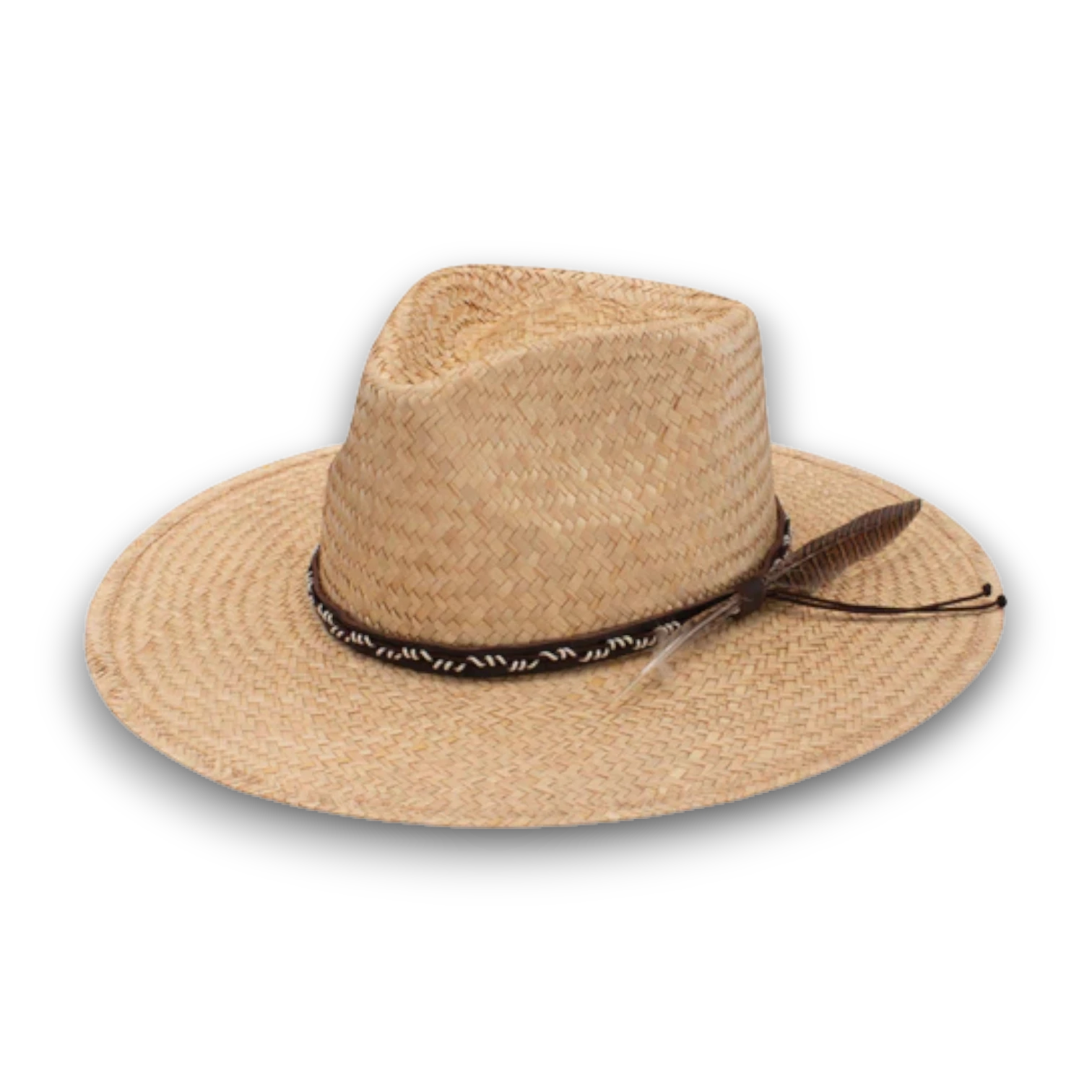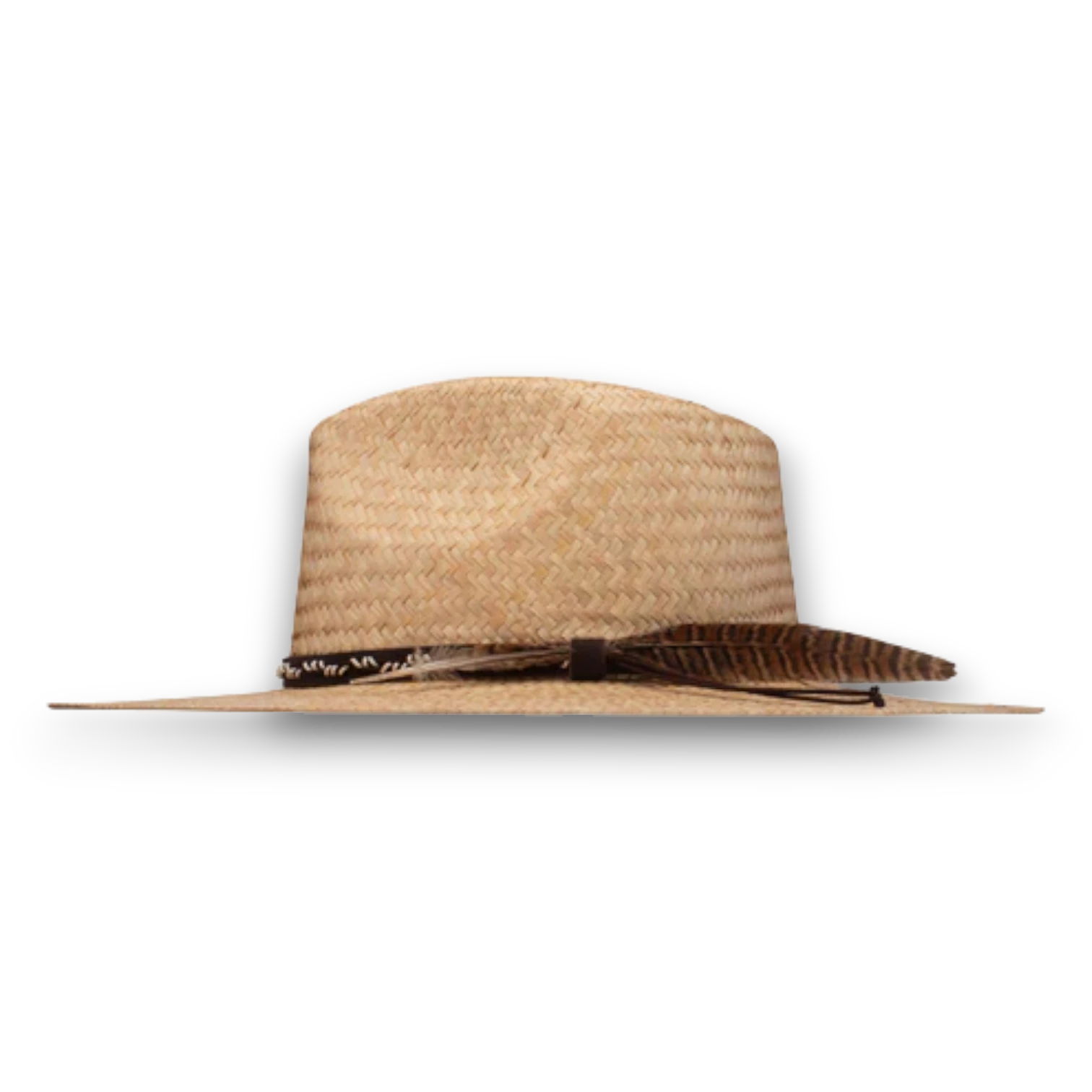 The Stetson Grand Loop is a rugged yet refined straw hat designed for those who embrace the outdoors with style. Crafted from high-quality natural straw, it features a 3 5/8” brim that provides just the right amount of shade while maintaining a relaxed, effortless look. The teardrop crown gives it a timeless appeal, while the woven hatband with a decorative feather accent adds a unique touch of character. Perfect for warm-weather adventures.