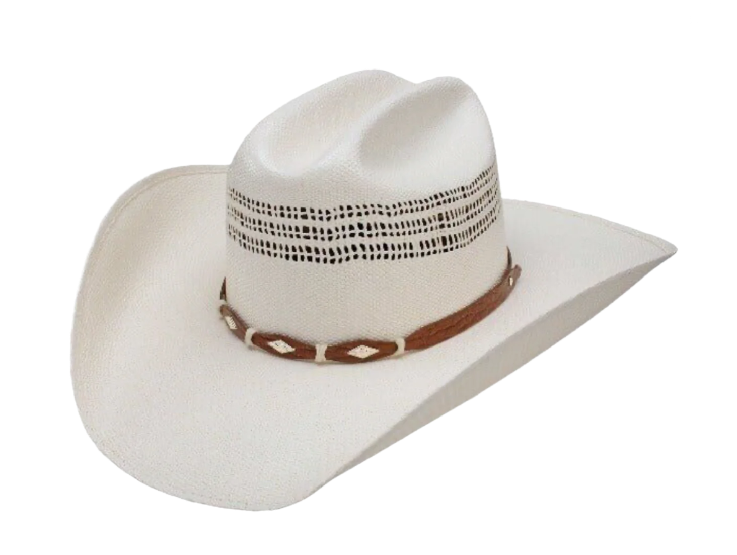 Experience the ultimate cowboy style with this Youth Cowboy Hat. Perfect for young and adventurous cowboys, this vented Bangora hat features a 5 1/4" rounded brick crown, a 4” brim, and an elastic sweatband for a comfortable fit.