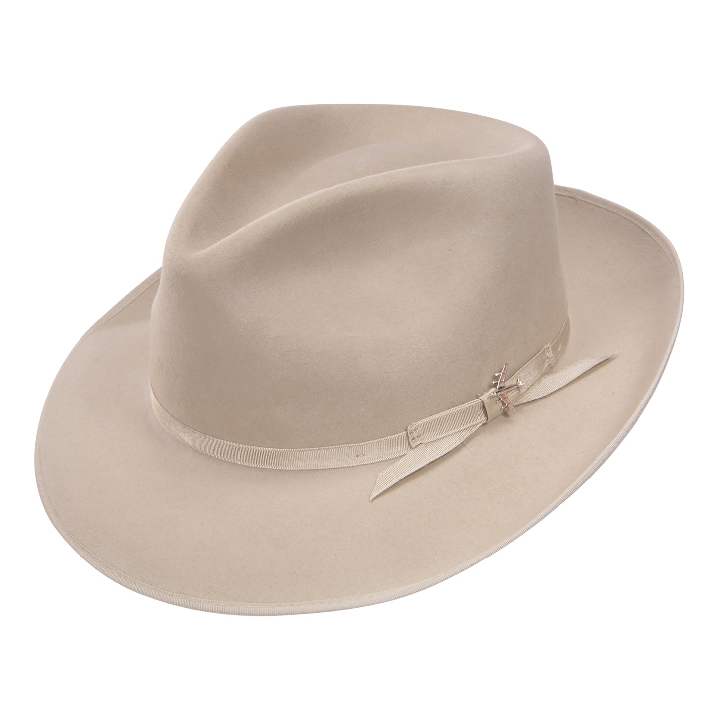 The Stetson Stratoliner B is a vintage-inspired fedora with modern functionality. Its meticulous design includes a pinch-front crown, wide brim, and airplane lapel pin for a touch of style. The firm felt construction retains its shape, perfect for frequent travelers, while the interior sweatband adds comfort and the grosgrain ribbon adds elegance. From new adventures to formal occasions, the Stratoliner B is the perfect complement, showcasing Stetson's enduring legacy of quality and style.